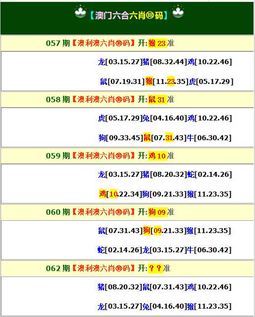 | 062期 黄金八肖〔猴猪狗鸡牛蛇鼠虎〕开:?00准 |